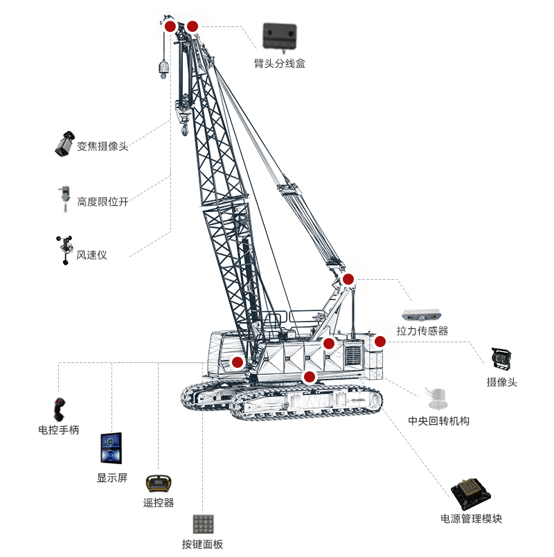 支持转台回转控制、高度限位控制、变幅和卷扬控制。