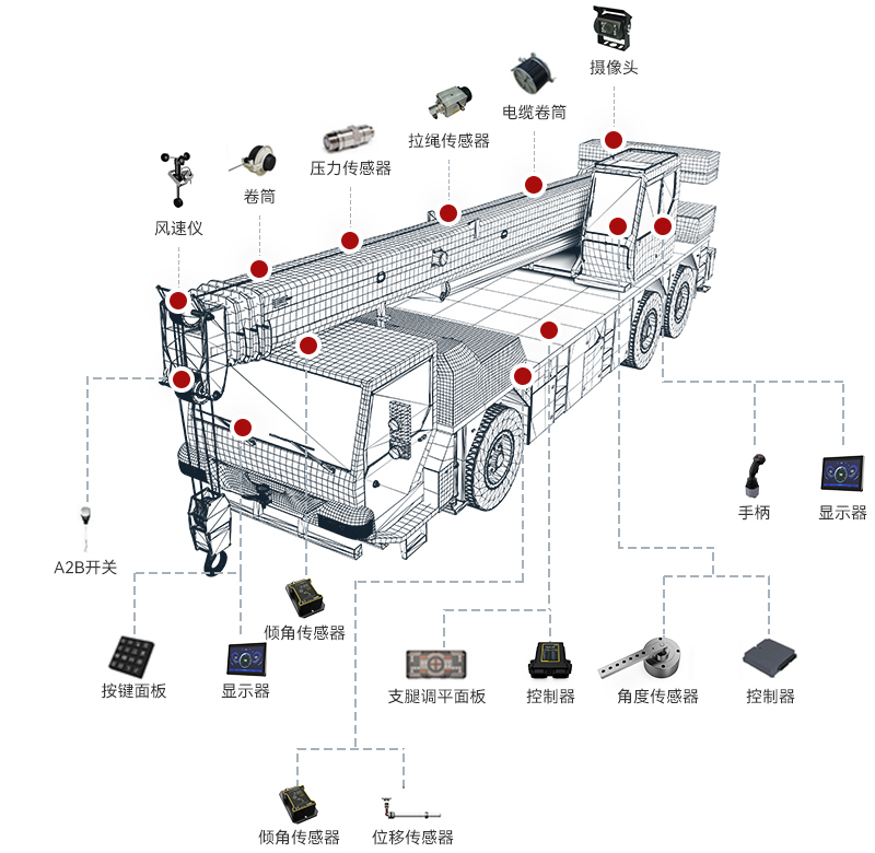 支持转台回转控制、高度限位控制、变幅和卷扬控制。