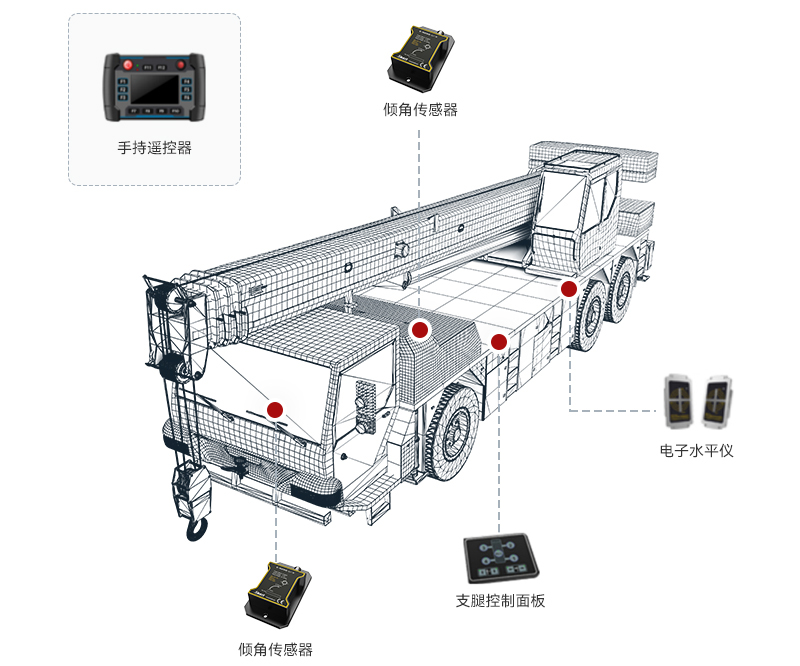 包括变幅、伸缩、卷扬和转台回转控制,实现精细操作。